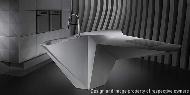 Like the shapes created by the Oriental art of folding paper, Karim Rashid’s new Origami Island kitchen, designed for Amr Helmy Designs, reveals a complex design that is simultaneously elegant and subtle. Made with Corian® solid surface, this kitchen was skillfully manufactured by the Egyptian producer Amr Helmy Designs, a company that specialises in innovative projects with Corian® solid surface.